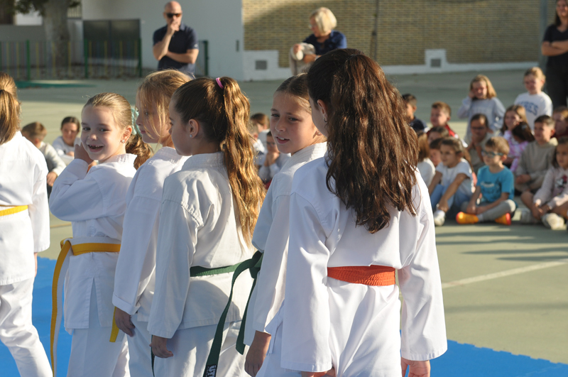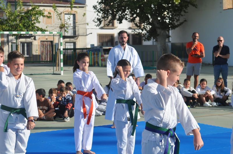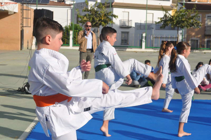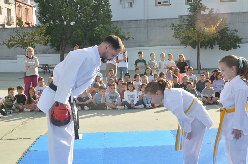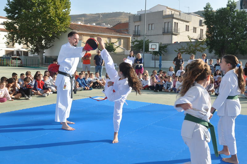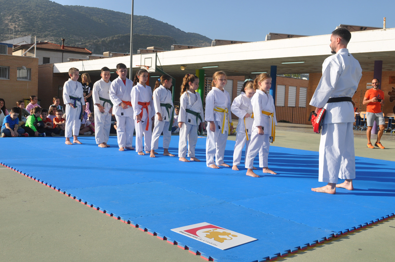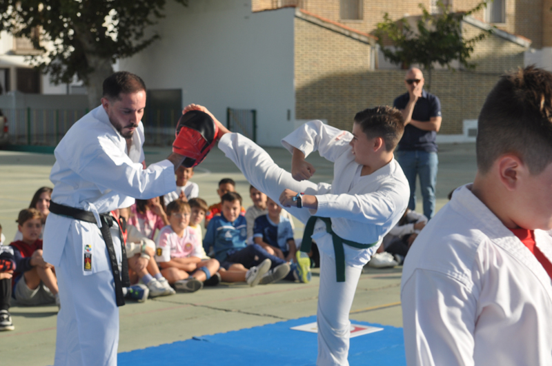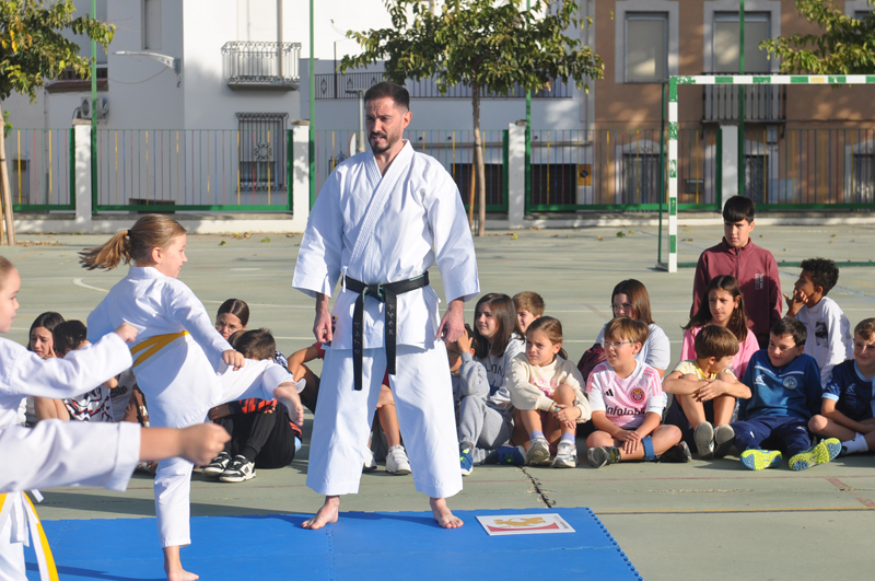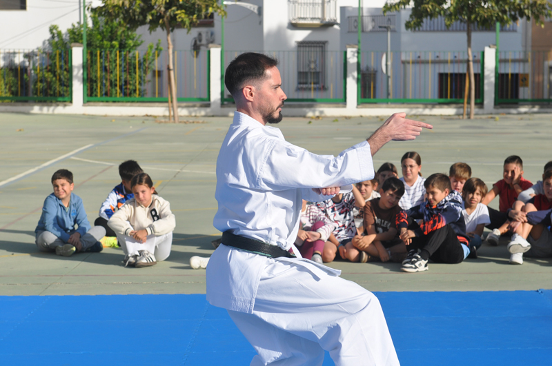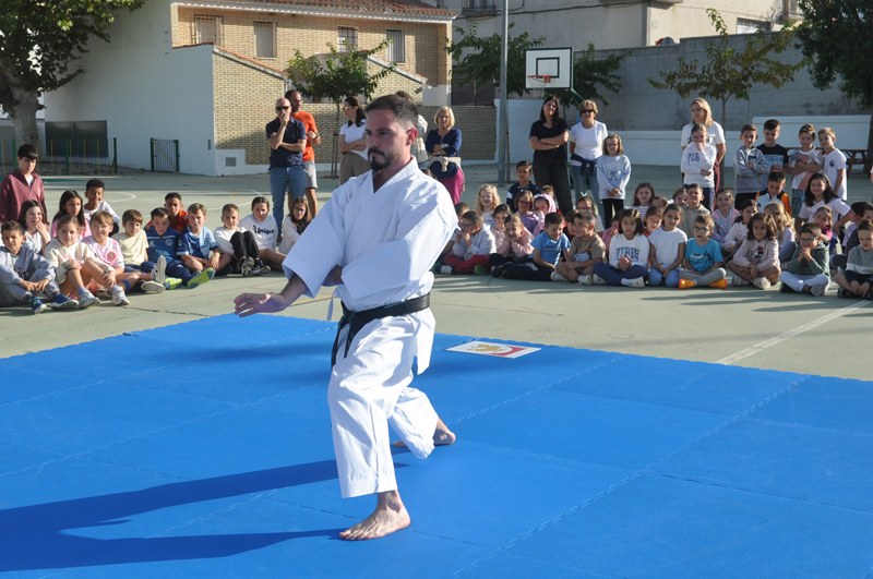 El maestro Álvaro Higueras, en representación del Club Shotokan Villoslada fue el encargado de dirigir la demostración que contó con karatekas pertenecientes a este centro escolar.